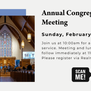 We will have one combined worship service on Sunday, February 8th at 10:00am. There will be Kids Ministry programming available. Confirmation will meet from 8:15-9:45am. Our Annual Meeting will immediately follow the service with lunch provided. Please register for the meeting & lunch via the registration event.