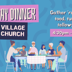 Join us to pray, eat, and play! Sunday Dinner is a great opportunity to meet other individuals and families that call Village Church home, and eat a delicious catered meal! The meal is $5 per person (or $20 per family). Please register via Realm Connect by clicking the graphic.