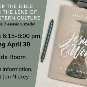 Join us for a 7-week journey through Jesus and Women by Kristi McLelland and experience the life and ministry of Jesus in a fresh, powerful way. Through a Middle Eastern lens, this study brings the stories of Scripture to life—inviting you to walk the dusty roads of Galilee and encounter the heart of Christ. Discover how Jesus honored, restored, and ...